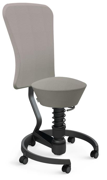 Rückenlehne mit Bezug in gleicher Ausführung wie der Sitz. Die mehrfach bewegliche Rückenlehne ist 6fach zwischen 110 und 116 cm höhenverstellbar und kann jederzeit ganz leicht an- oder abmontiert werden.Feder Standard schwarz